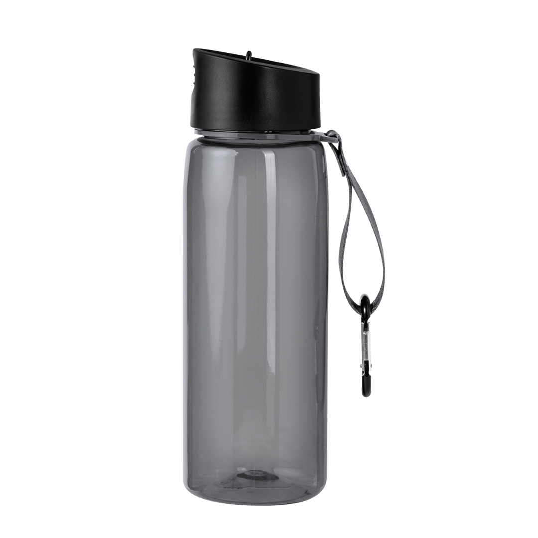 Bidón de 800 ml fabricado en resistente RPET y cuerpo de acabado transparente en variada gama de colores. Tapón negro de rosca, con dosificador y dosificador plegable. Con cinta de transporte a juego y mosquetón metálico para un cómodo transporte. Disponible en variada gama de colores.El material RPET se elabora a partir de plástico reciclado, para así fomentar la reutilización de residuos plásticos y ayudar a la sostenibilidad del planeta. RPET