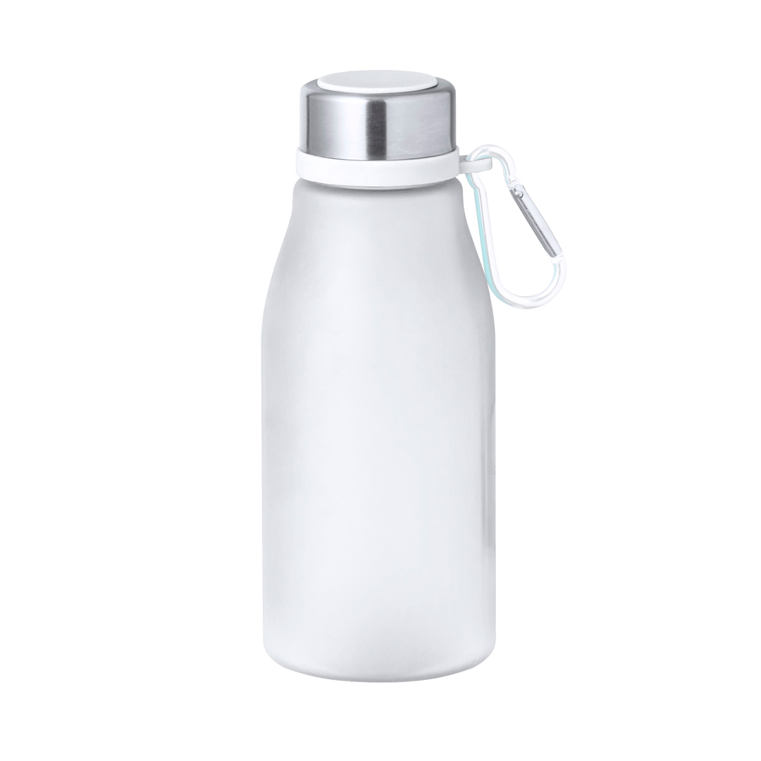Bidón en RPET de 370 ml de capacidad. Tapón de seguridad de rosca en acero inox y práctico mosquetón metálico con color a juego del bidón. Disponible en variada gama de colores solidos en acabado mate. Libre de BPA y presentado en atractiva caja de diseño kraft. El material RPET se elabora a partir de plástico reciclado, para así fomentar la reutilización de residuos plásticos y ayudar a la sostenibilidad del planeta. RPET