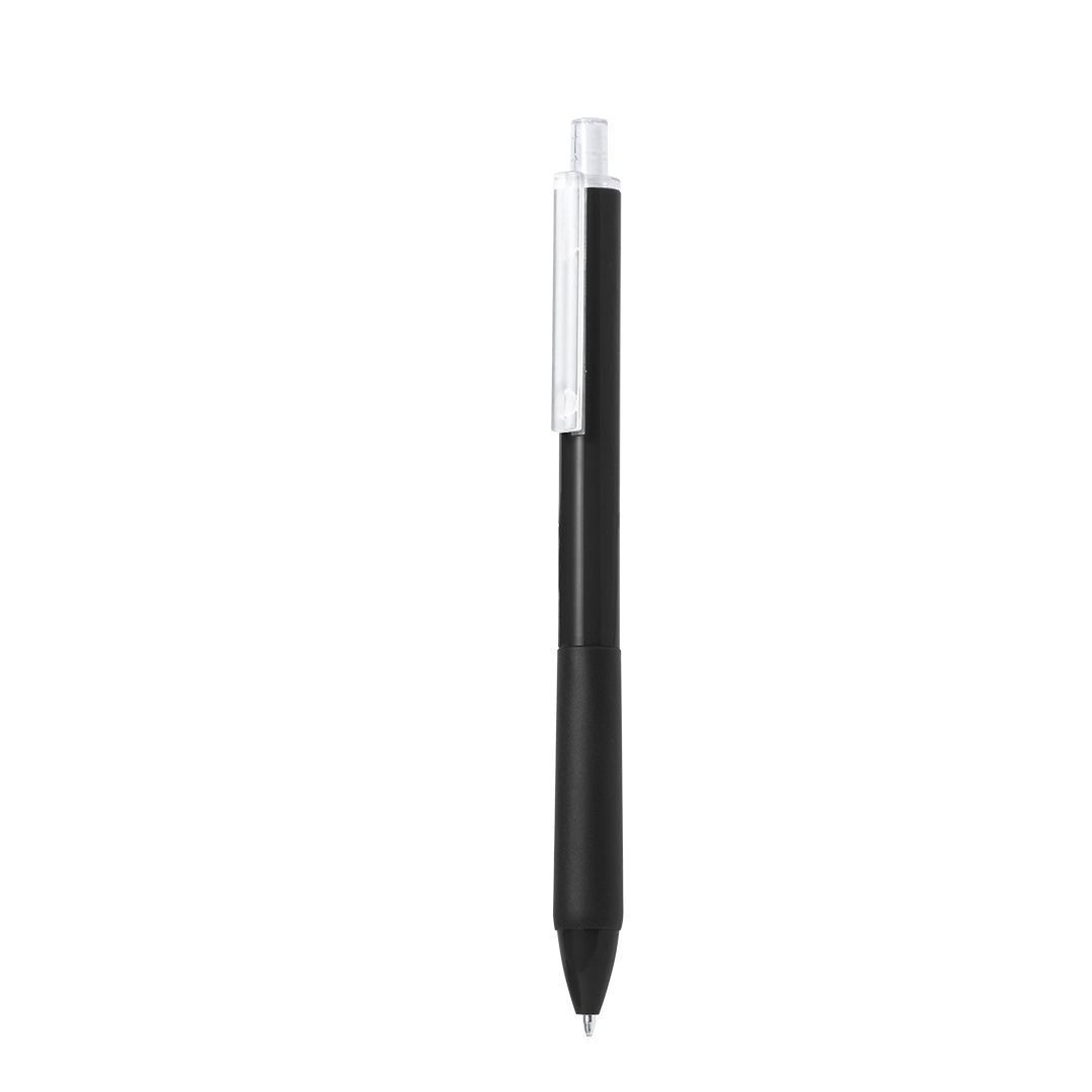 Bolígrafo de mecanismo pulsador fabricado en ABS reciclado. Clip y pulsador transparentes, con cuerpo de suave acabado en variados colores y empuñadura a juego. Logotipo ABS reciclado en la parte superior del bolígrafo. En tinta azul.El RABS es un plástico altamente reciclable de gran resistencia y con multitud de aplicaciones que lo convierten en una solución eco-friendly. Con certificación RCS, que garantiza el origen reciclado del mismo. ABS Reciclado