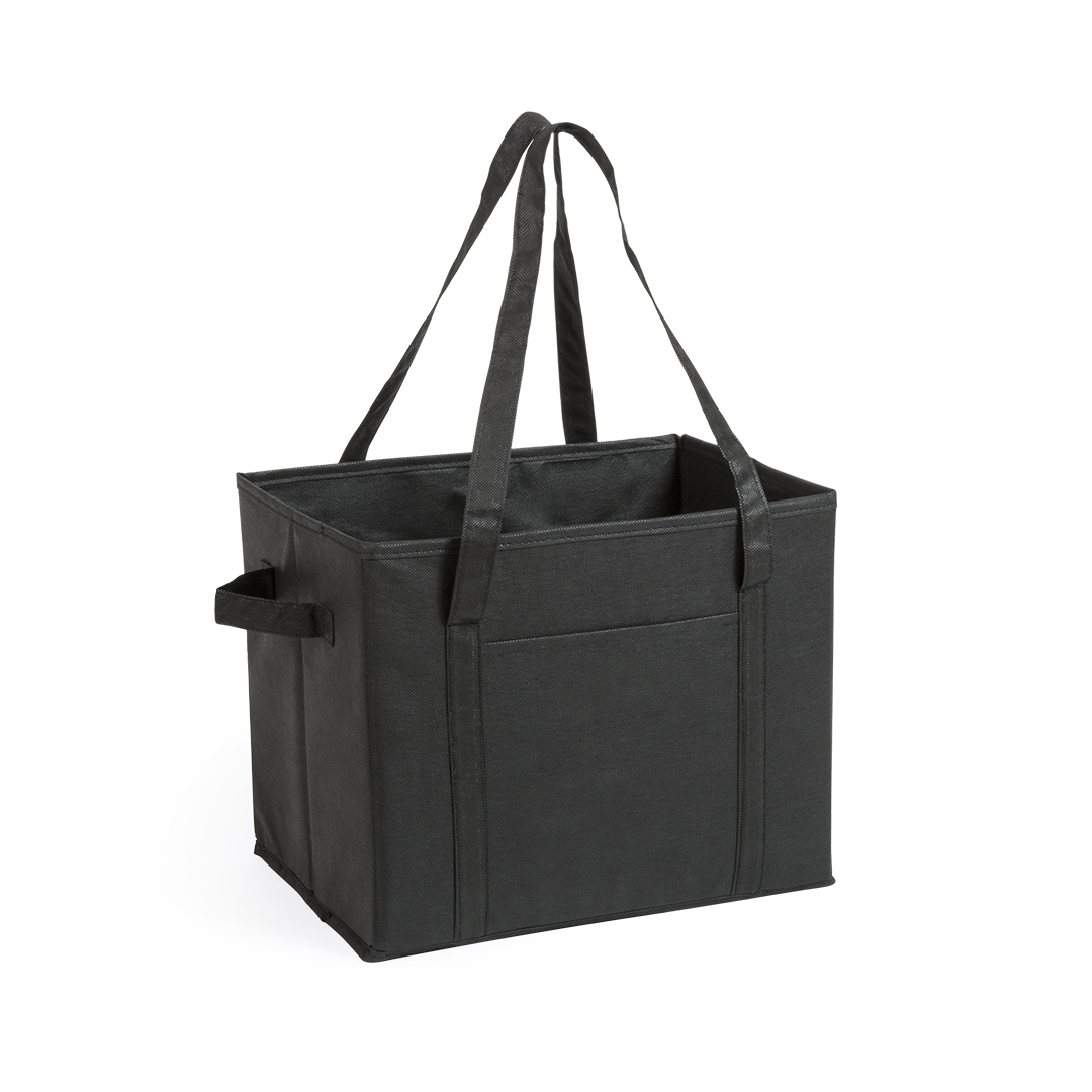 Organizador plegable para el maletero del coche en resistente non-woven de vivos colores. Con asas de transporte reforzadas, asa lateral, bolsillo frontal y base rígida para un firme ajuste. Non-Woven
