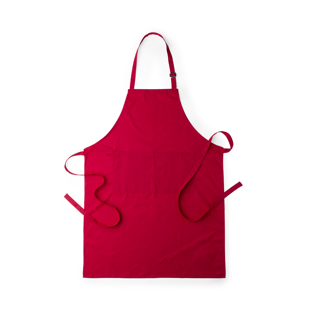 Delantal de alta calidad en material TC -combinado de algodón y poliéster-. En variada gama de vivos colores, con bolsillo doble frontal y cintas de cuello con ajustador. De corte por debajo de la rodilla. TC. Algodón/ Poliéster