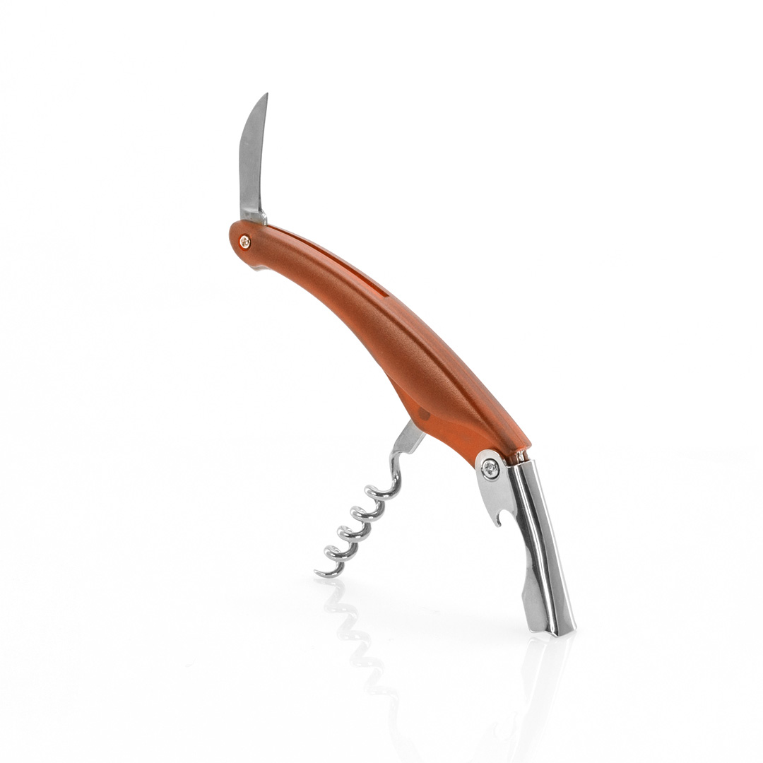 Clásico sacacorchos con accesorios de acero inox. Incluye cortacápsulas y abridor. Presentado en caja individual.