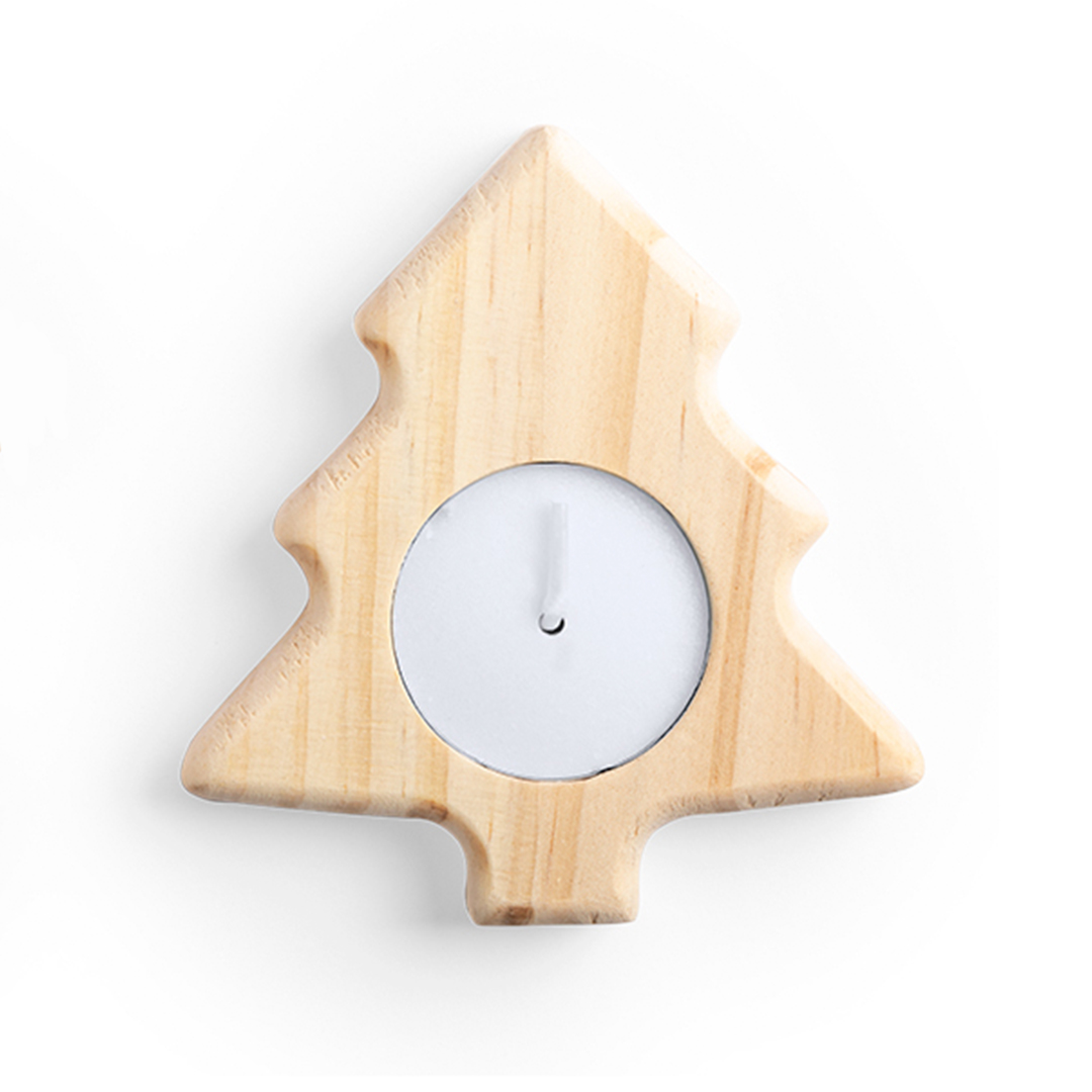 Vela de navidad de madera de pino con originales diseños de estrella y arbolito. Presentada en cajita blanca individual. Madera