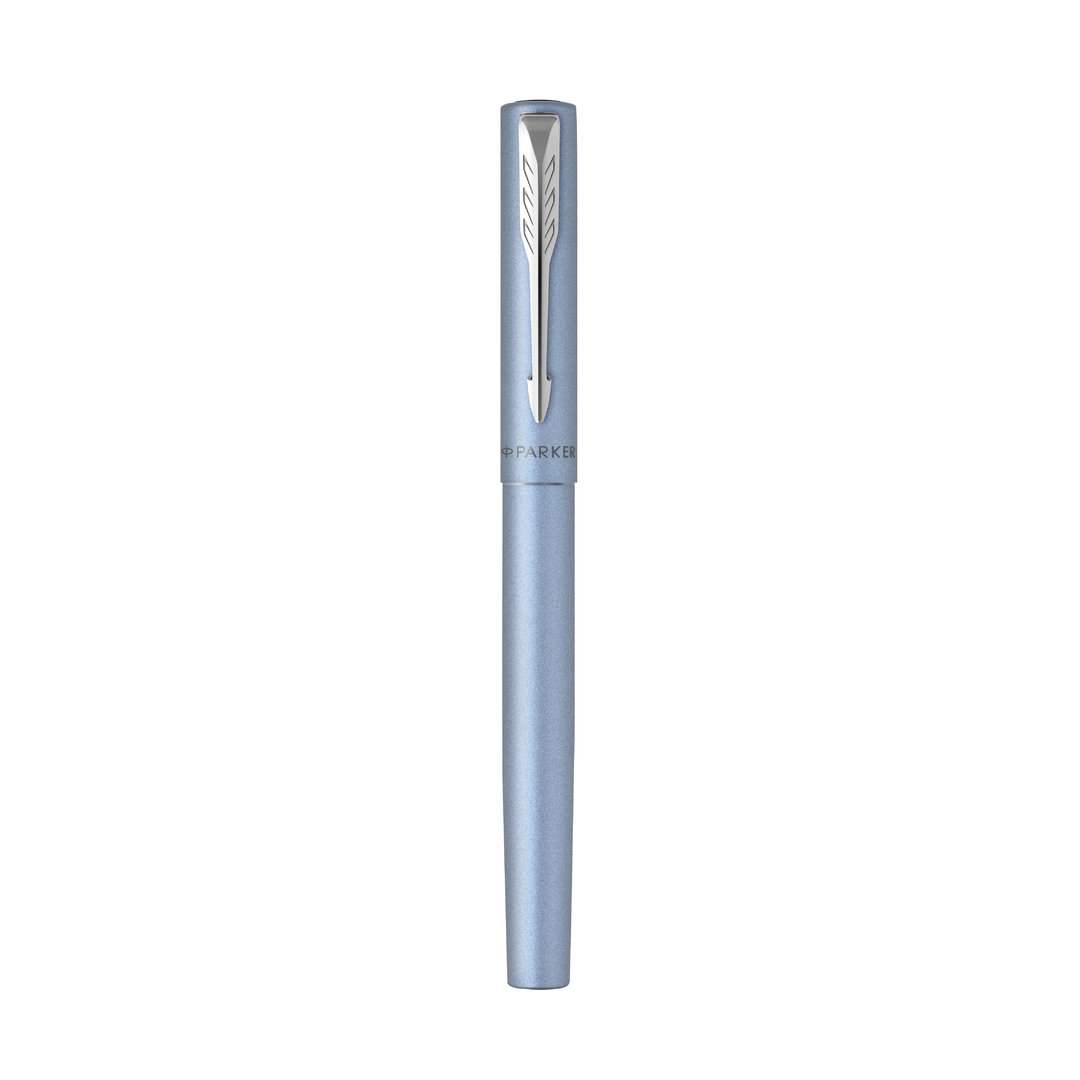 Roller Parker Vector XL, fabricado en acero inox pulido, resaltado con un adorno cromado y el inconfundible clip con la forma icónica en punta de flecha de la marca en la capucha. En tinta negra y presentado en estuche individual negro con logotipo Parker. Escritura limpia y homogénea, sin saltos, y de gran gran fluidez e intensidad. Su práctica forma cilíndrica y su resistente plumín fino de acero inoxidable permiten escribir con gran comodidad y precisión, convirtiendo al Vector XL en un instrumento de escritura tan accesible como versátil. Acero Inox