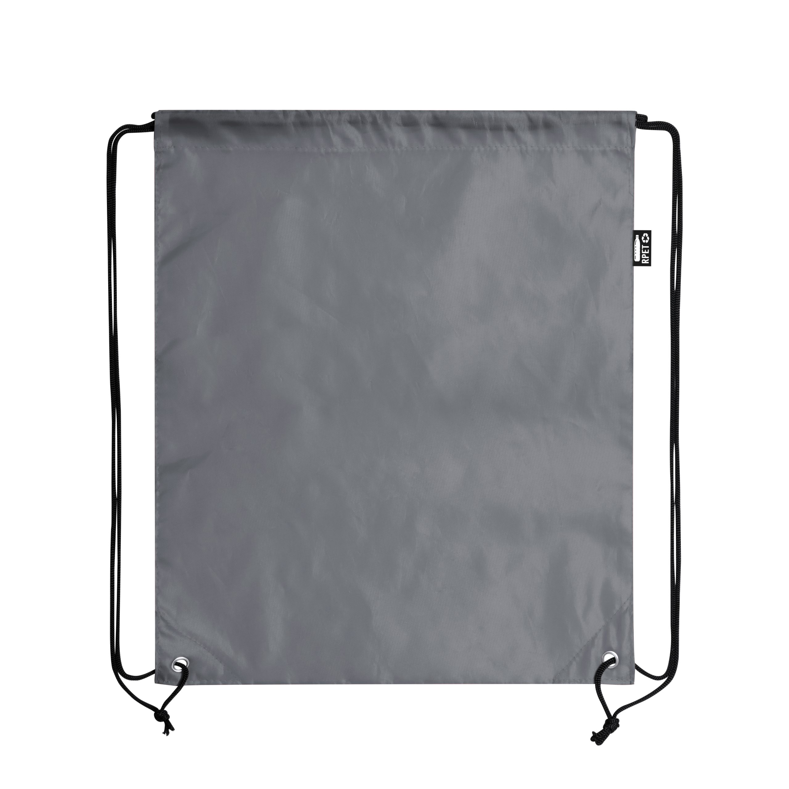 Mochila de cuerdas en suave poliéster RPET. Con cuerdas autocierre, esquinas reforzadas y resistentes argollas metálicas. Distintivo RPET en etiqueta lateral y disponible en variada gama de colores (color blanco especialmente fabricado para impresión en sublimación).Elaborado a partir de plástico reciclado, para así fomentar la reutilización de residuos plásticos y ayudar a la sostenibilidad del planeta. Poliéster RPET