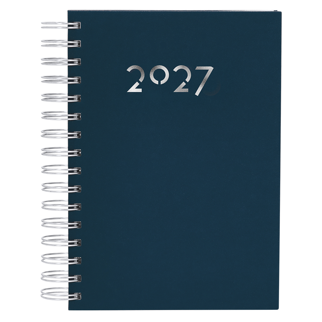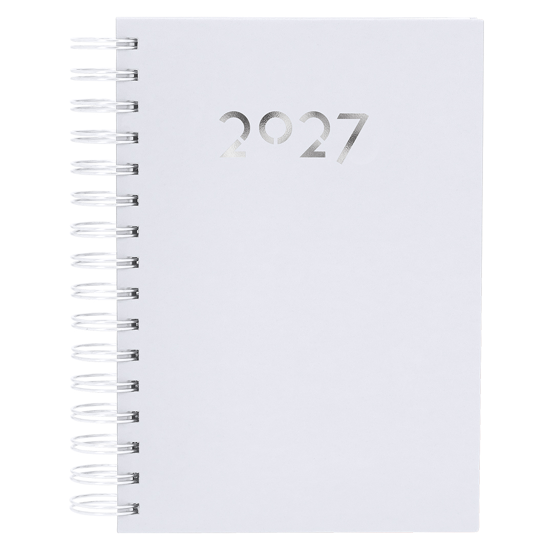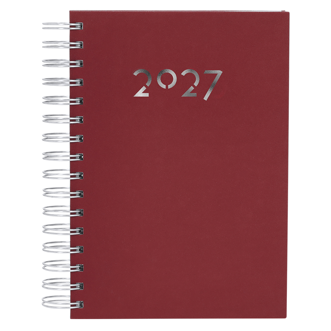 Agenda de anillas tamaño A5, acabada en resistente y suave PU. Con cubiertas rígidas. Incluye caja kraft de presentación.Diseño página día y páginas con esquina troquelada para marcar el día. En 2 idiomas: castellano e inglés. PU