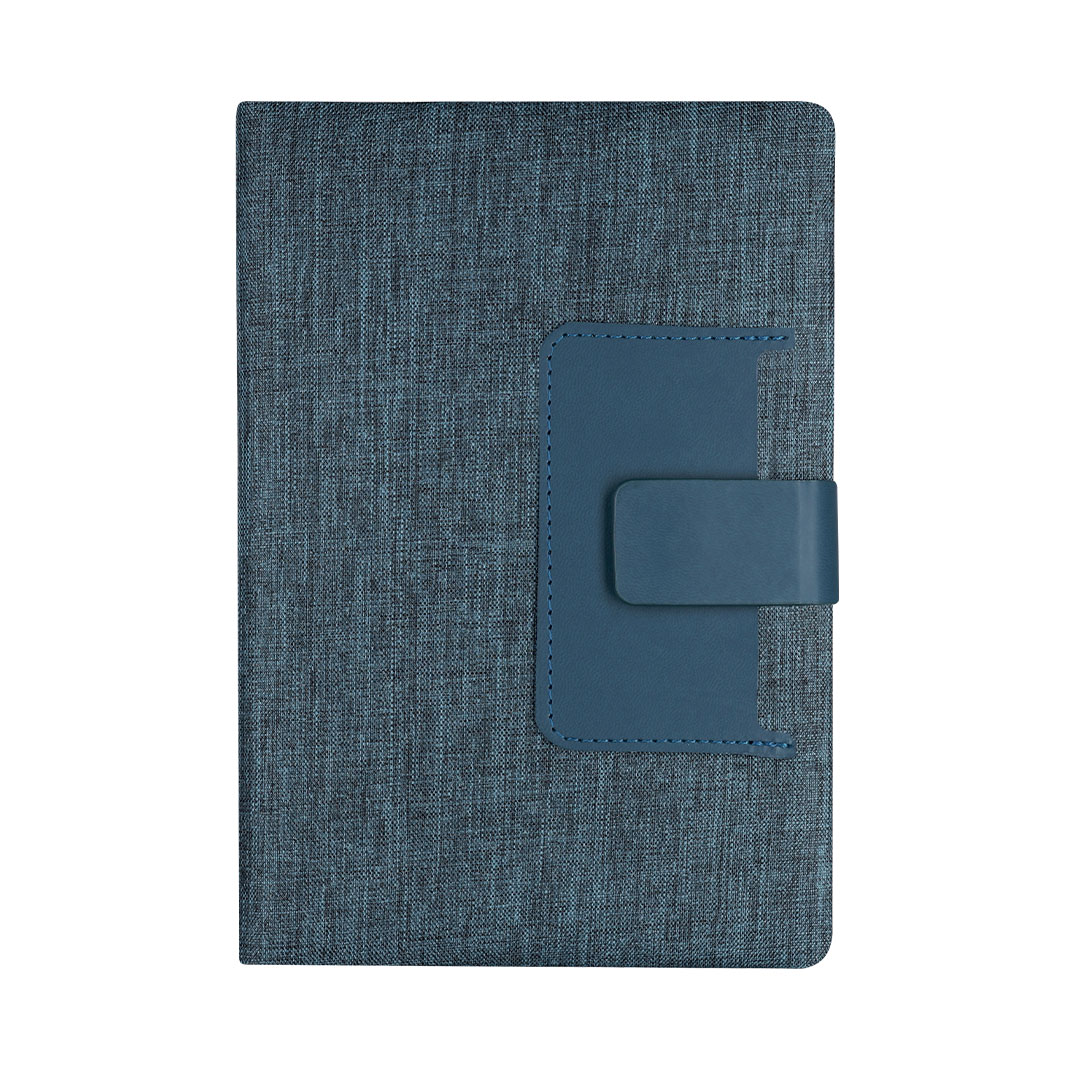 Bloc de notas de tapas rígidas en combinación del poliéster RPET 300D y PU. Incluye bolsillo de PU en portada, ideal para tarjetas. Con cierre magnético, 80 páginas de disposición a una raya y marcapáginas a juego.El material RPET se elabora a partir de plástico reciclado, para así fomentar la reutilización de residuos plásticos y ayudar a la sostenibilidad del planeta. Poliéster 300D RPET/ PU