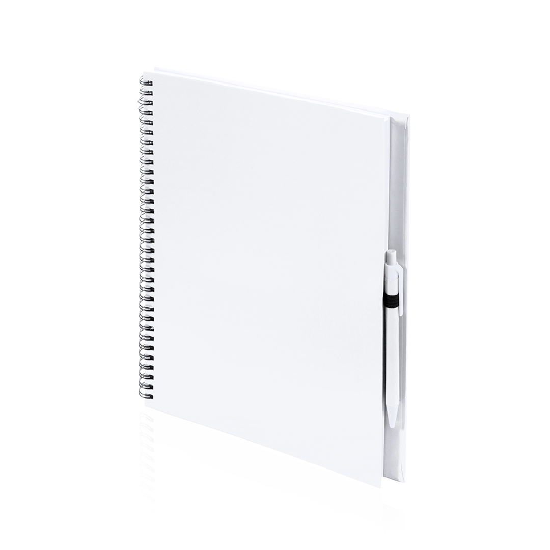 Libreta de anillas con tapas de suave tacto acabadas en resistente cartón reciclado y bolígrafo en cartón reciclado a juego. De atrevidos colores, 80 hojas lisas y con soporte para bolígrafo en contraportada. Cartón Reciclado