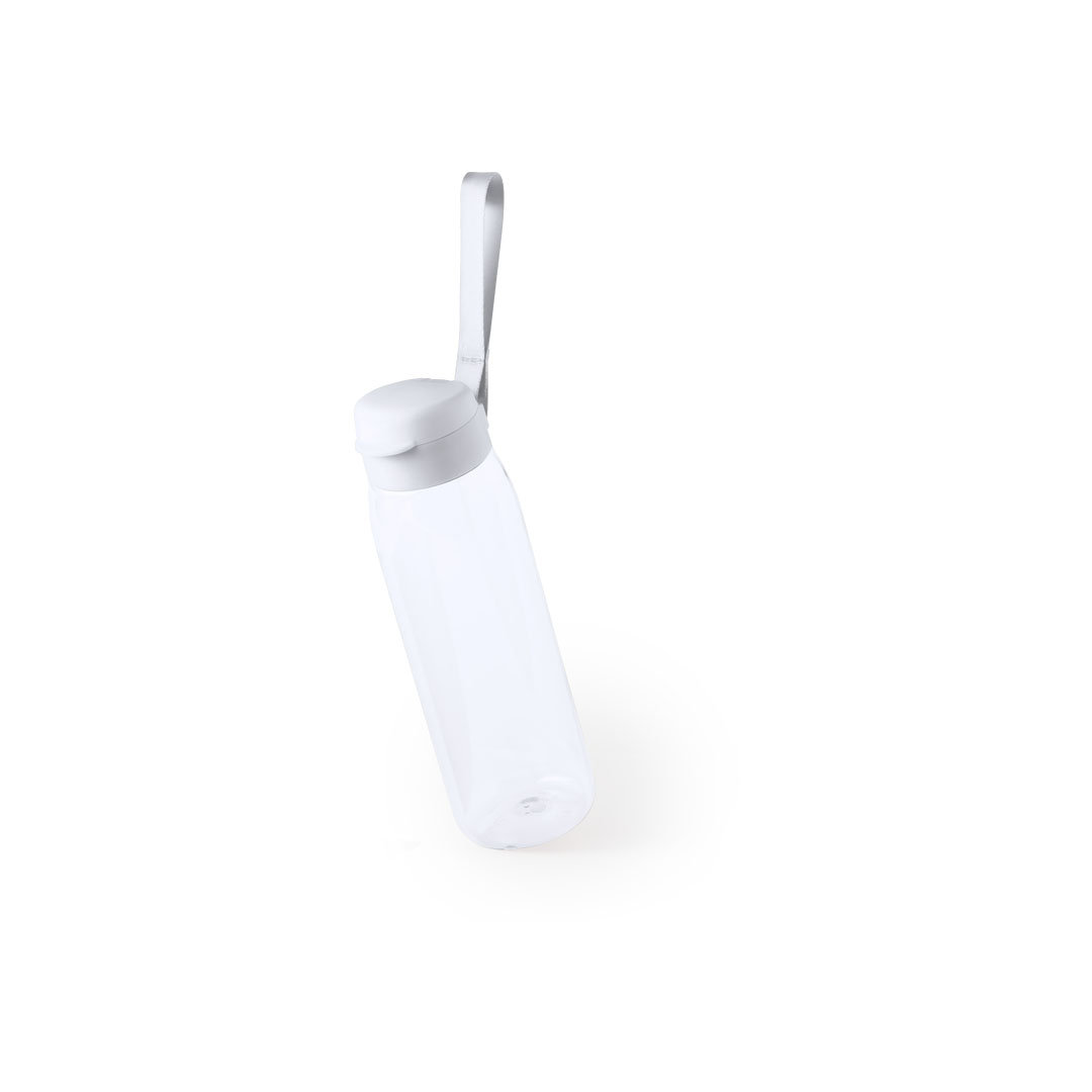 Bidón en alta calidad y de gran capacidad -820 ml- en material tritán resistente al calor y libre de BPA. Disponible en variada gama de colores transparentes, con tapón dosificador de seguridad a juego y cinta de transporte. Tritan