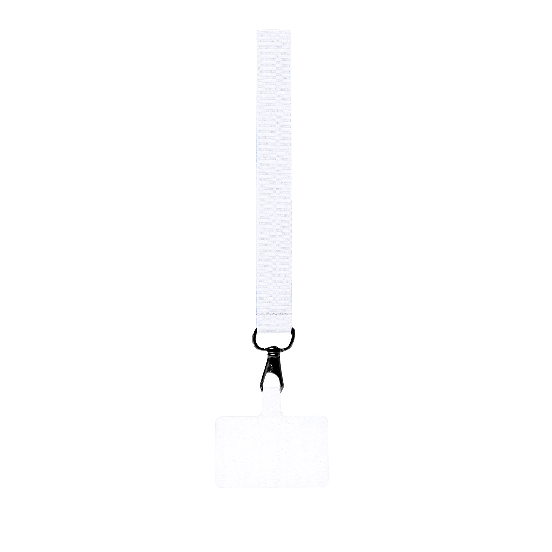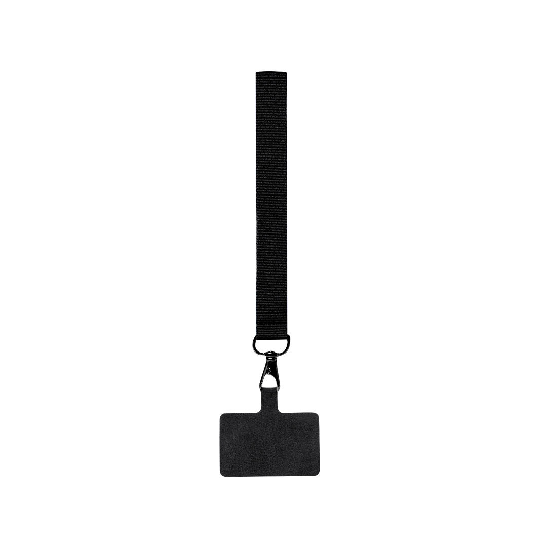 Original pulsera soporte en suave poliéster, adaptable para todo tipo de muñecas y con accesorio de transporte para situar entre la funda y el smartphone. Cinta de transporte a juego y mosquetón metálico giratorio en color negro. Disponible en variada gama de colores. Poliéster