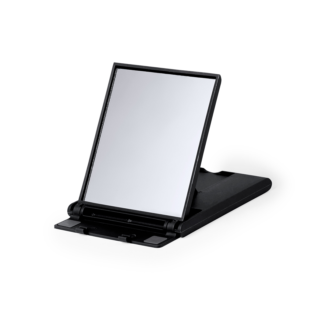 Soporte con espejo para smartphone y tablet fabricado en resistente ABS. Incluye 2 antislips de silicona y 6 posiciones. De diseño compacto y plegable para poder llevarlo a cualquier lado. Disponible en amplia gama de colores. Presentado en caja de diseño kraft.