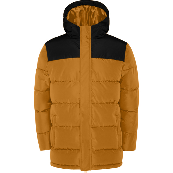Parka acolchada combinada repelente al agua con capucha fija y visera. Cremallera frontal cubierta con una tapeta. Protector de barbilla del mismo tejido. Puños elásticos. Bolsillos laterales con cremalleras y ribeteados en el mismo tejido. Bolsillo interior en pecho izquierdo. Acceso interior para reprocesos. Tejido Exterior: 100% PoliésterGuata: 100% PoliésterForro: 100% Poliéster708 g/m²