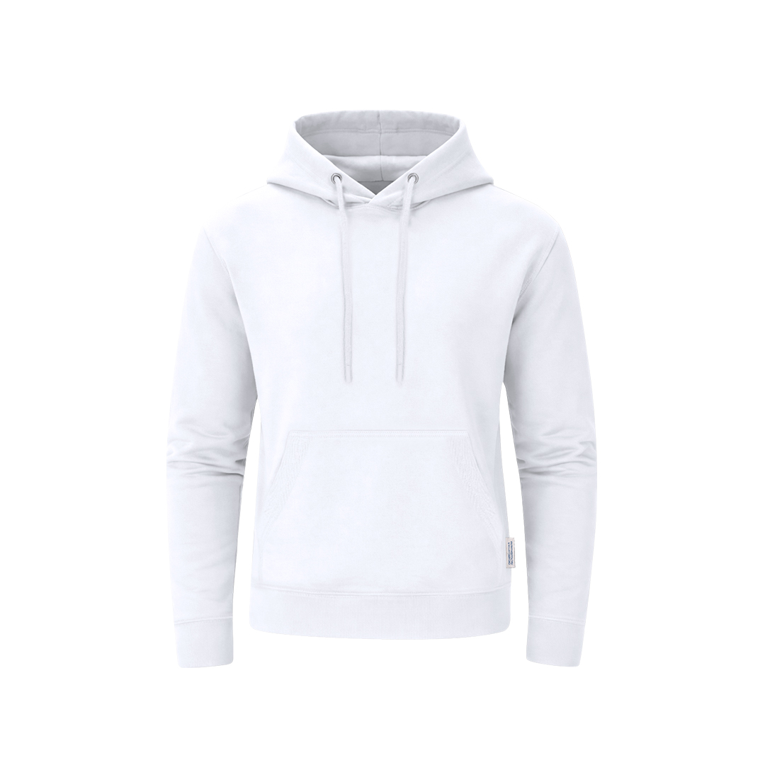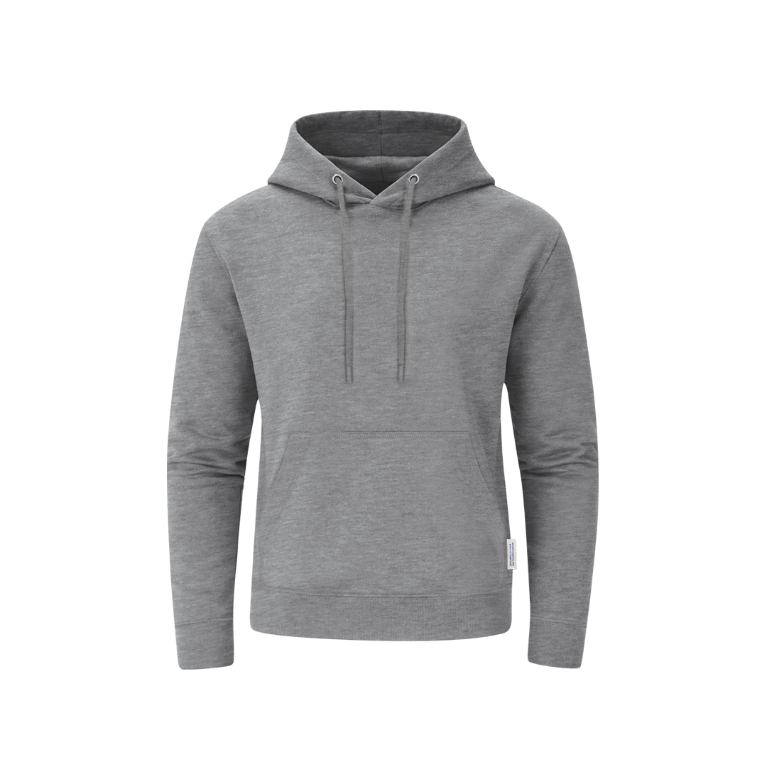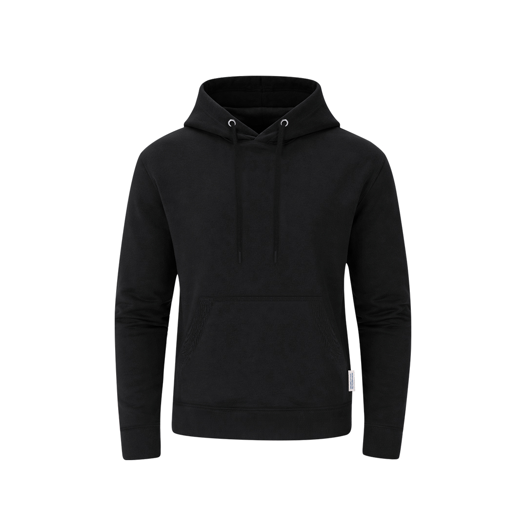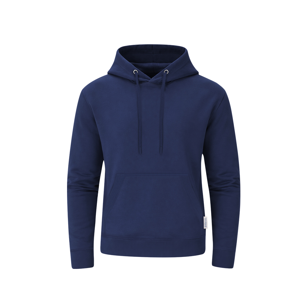 Sudadera con capucha Unisex de Algodón Orgánico y Poliéster Reciclado, en suave felpa perchada de 280 g/m2. Con capucha forrada de doble capa, cordones redondos ajustables -con topes a juego- y ojales metálicos. Puños y cintura de punto canalé de elastano y bolsillo frontal tipo canguro. Cubrecosturas reforzado en cuello, con etiqueta distintiva eco. 60% Algodón Orgánico/ 40% Poliéster RPET 280 g/ m2