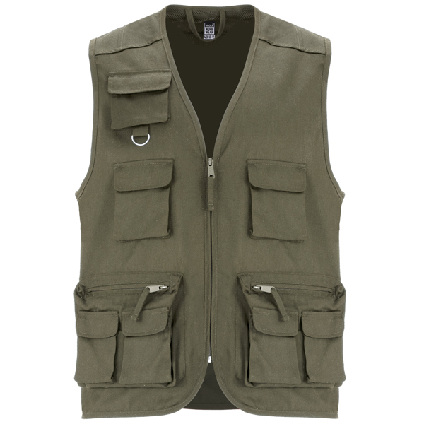 Chaleco laboral multibolsillos.· Cuello en pico.· Cremallera frontal con tirador.· Bolsillo superior derecho con argolla metálica.· Dos bolsillos con tapeta y cierre de velcro.· Dos bolsillos laterales con cremallera y superpuestos dos bolsillos con tapeta y cierre de velcro.· Dos bolsillos traseros con tapeta y cierre de velcro.· Bordes ribeteados con vivo del mismo tejido.· Etiquetado Roly WRK exterior. 80% poliéster / 20% algodón, 200 g/m² .