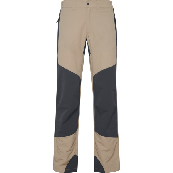 Pantalón largo de montaña unisex. Combinación de dos tejidos, uno con elastano y a dos colores. Cierre con botón a presión y cremallera. Bolsillos laterales con cremalleras invertidas y tirador. Bolsillo trasero con cremallera invertida y tirador. Trebillas para el cinturón. Cintura engomada en la parte trasera. Ajustadores elásticos en los tobillos. Pinzas en las rodillas para mayor ergonomía. Tejido principal: 100% poliamida, 130 g/m².Segundo tejido: 88% poliamida / 12% elastano, 225 g/m².