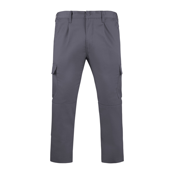 Pantalón largo multibolsillos.· Tejido resistente.· Cintura engomada en la parte trasera con trabillas.· Dos pinzas bajo las dos trabillas delanteras.· Piezas de refuerzo en las rodillas.· Dos bolsillos frontales a la cadera.· Dos bolsillos plaqué traseros con tapeta y cierre de velcro.· Dos bolsillos cargo con tapeta y cierre de velcro.· Pieza de refuerzo en la entrepierna.· Etiquetado Roly WRK exterior. 65% poliéster / 35% algodón, 240 g/m².